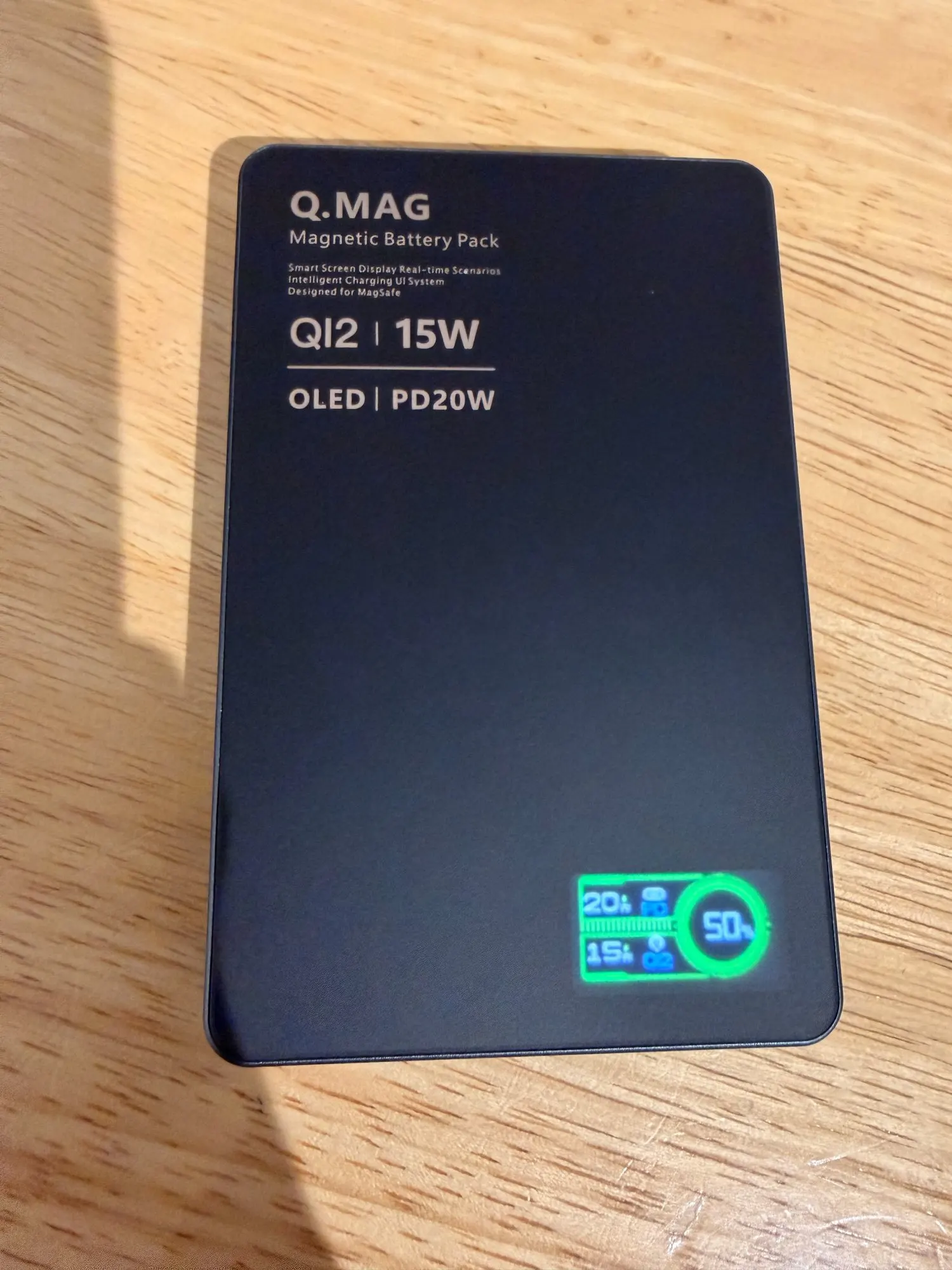Elegant overview of the ultra-slim Qi2 power bank, showcasing its premium glass back and minimalist design.